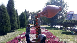 Фото — Коллектив предприятия «Таза-Нарын» благоустраивает и озеленяет улицы областного центра